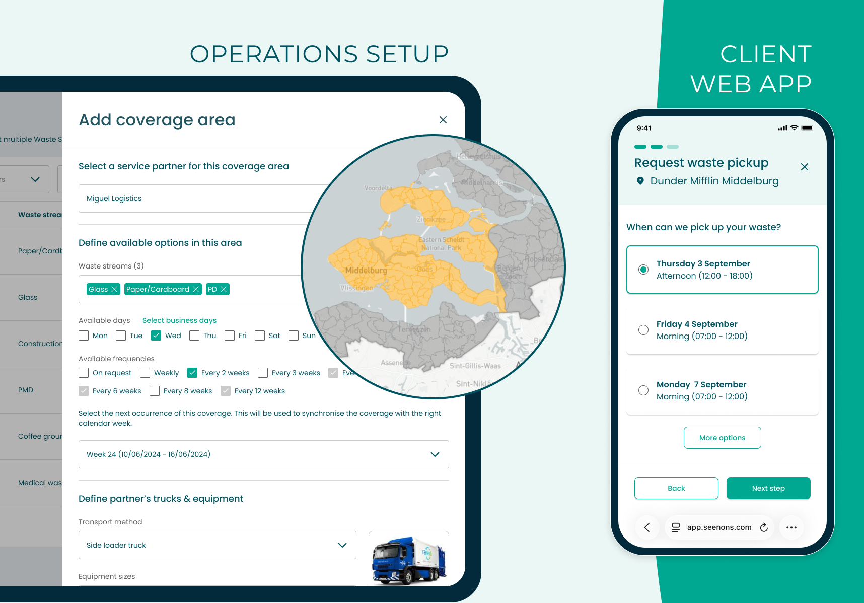Seenons connects businesses with 300+ waste collection partners, making sure every waste stream is reused or recycled in the best possible way. To match clients with the right partner and available collection dates, the platform relied on up-to-date route data, manually maintained by the operations team. It had worked at small scale, but as Seenons grew, we needed to find a way for it to work at scale too.